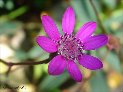 Ein kleiner, zarter, aber unermüdlicher Blüher ist Senecio polyodon. Immer noch zeigt er seine pinkfarbenen Körbchenblüten. Höhe 60cm.
