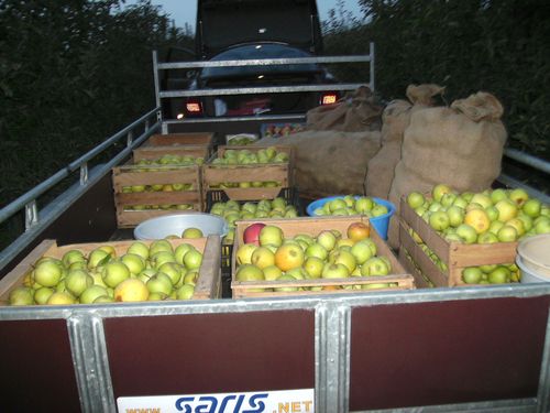 Heute morgen einen Eimer voll Sweet Dumpling und eine Kiste unreife Kiwanos. Heute Nachmittag die letzten Äpfel.