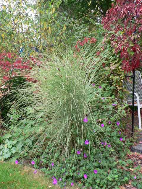 Seit Monaten webt sich 'Ann Folkard' unermüdlich durch andere Stauden und Gräser.