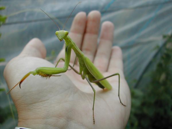 Überhaupt ist der Folientunnel eine reine Fundgrube! hier leben nämlich die wärmeliebenden Gottesanbeterinnen. Aufgrund des kühlen Wetters war aber nur ein männliches Exemplar aufzutreiben....Wirklich beeindruckend diese Tiere! Sie beobachten einen richtig. Besonders die beweglichen Pseudopupillen sind faszinierend...