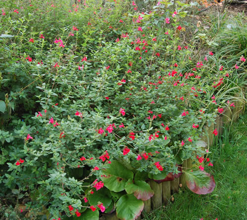 Johannisbeersalbei Pink hat sich auch sehr schön entwickelt, etwa 1m2 gross und 60 cm hoch. Sie hat eine schöne Farbe.