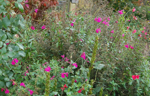 Johannisbeersalbei Pink hat sich auch sehr schön entwickelt, etwa 1m2 gross und 60 cm hoch. Sie hat eine schöne Farbe.