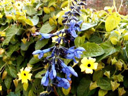 .Nun wird der Garten herbstlich schütter und alles hat gelbe, braune oder rote Blätter, aber jetzt blüht er in ca. 3 Meter Höhe schön blau.