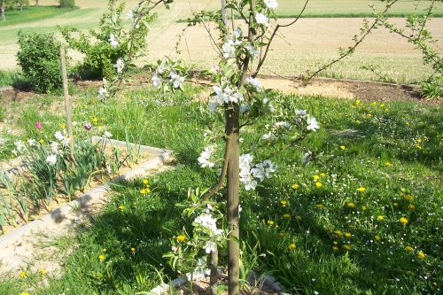 Ich hatte den mal bei einem Veredelungskurs eines OGV´s bekommen.Es ist eine schlanke Spindel. Die Früchte sehen bis auf den Apfelwicklerbefall und einiger Schrumpfäpfel (ich weiß nicht wie die kleine verkrüppelten Früchte genannt werden) sehr gesund aus. Eigentlich ist es die erste größere Ernte. Die ganzen Jahre war immer etwas was den Baum störte. Am schlimmsten war daß die Wurzeln stark angefressen wurden von Mäusen.Der "Baum" ist gerade mal 1,80m hoch, ich bin mir nicht sicher ob es nur an der Unterlage liegt oder ob der Baum so schwachwüchsig ist. Er hat kaum Seitentriebe, ist schon 8 Jahre alt, mußte aber vor drei Jahren umgepflanzt werden wegen der Mäuse. Nun erst zeigt er was er kann.Eigentlich fast OT, paßt nicht in den "Alte Apfelsorten"-Faden ;)So sah das im Frühjahr aus.