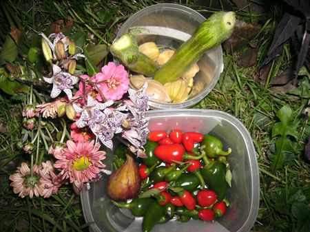 .... sieht toll aus mit dem Blumenstrauß!Hier die Bilder von gestern. Die Paprikas hatte ich noch vergessen und die letzten Zucchini.