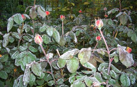 @Susanne: Heritage- ist das EINE Pflanze? Wenn ja, wie breit ist den die Rose? Habe einige gesehen und alle mit recht schmalem Wuchs... Und überlegt habe ich auch noch - sooo schmal könnte es bei mir eventuel passen... Vereiste Knospen gab es hier auch: