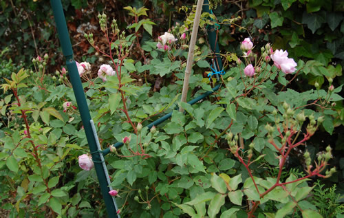 Die New Dawn mit langen Krakentrieben, das lässt ahnen, auf was ich mich da eingelassen habe. Die Blüten immer sehr schön