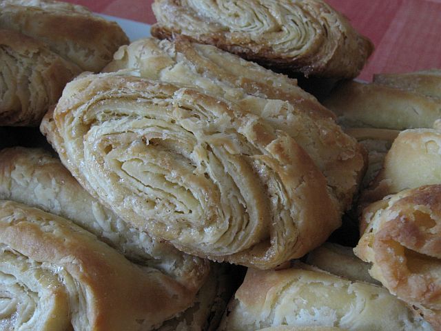 Habe heute Marion's Rezept für die Franzbrötchen ausprobiert. Eine Orange hatte ich gerade nicht und der Teig ging nicht so gut, sie schneckten aber trotzdem sehr lecker. Bei Gelegenheit versuche ich es mal mit Blätterteig. Das müßte auch gehen.