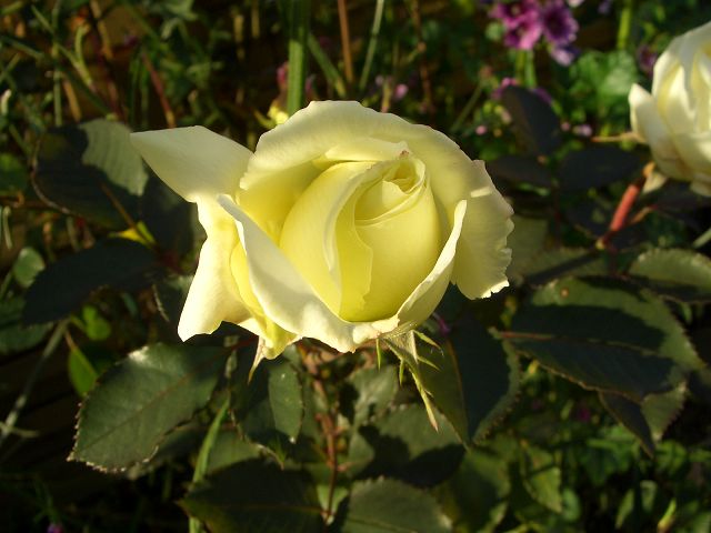 WunderschönDaybreak, die sich im halbschattigen Bereich des Gartens in diesem Jahr bereits zu einem schönen Sträuchlein gemausert hat. Die Ecke des Gartens wird relativ vernachlässig, darum so herrlicher, wenn die Rosen sich so gut machen. Ihr helles Gelb leuchtet erfrischend.
