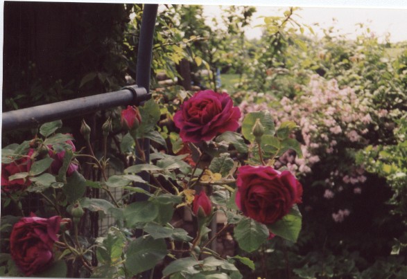 regenfest, der duft nicht intensiv aber sehr erfreulich, und gesund. steht halbschattig (5-6 stunden sonne), schneide im frühling, maximal 1/3 der zweigmenge. für den habitus hab ich ein bild, da ist sie zwar ganz rechts, mensch sieht aber trotzdem den eindruck. das runterpixeln hat dem bild leider nicht gut getan...ja und wichtig die blüten bleiben bis zum schluss schön, werden papierener und nur leicht bräunlicher. und dann machts platsch und weg sind sie - die blütenblätter natürlich.wie hast Du denn die vielen dunklen rosen 'vergesellschaftet' -was für ein umständliches wort- Beate? ich liebe dieses ganz dunkle rot sehr!frage an Dich und andere dunkle rosenbesitzerInnen: wie sind 'tuscany' und 'tuscany superb' im vergleich?lg, brigitteWie ist sie (=tradescant) denn so bei Dir - ich meine in Sachen Duft, Wuchsverhalten und Blattgesunheit?