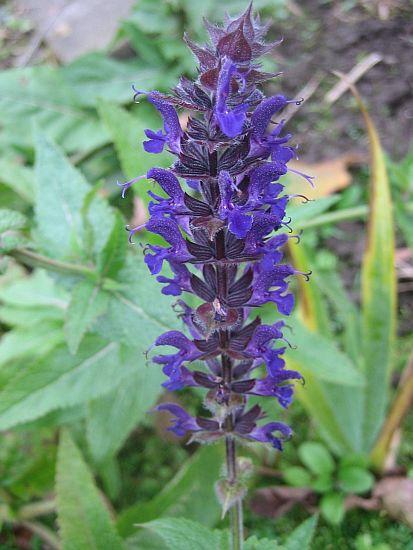 etwas farbkräftiger ein Salbei ohne Namen, der eigentlich etwa 60cm hoch sein sollte, sich aber gern am Boden rumlümmelt.