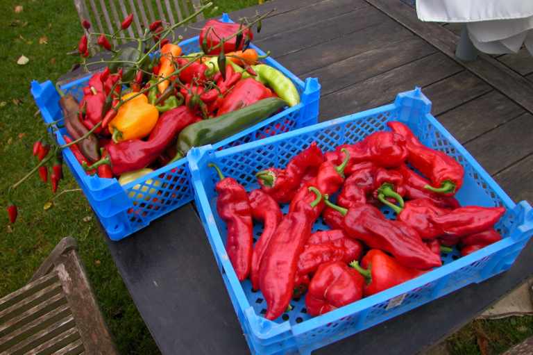 Jetzt muss ich auch mal angeben ;)Die letzten Paprikas aus dem Folientunnel. Ich hatte sie abgedeckt aber durch die hohe Luftfeuchte beginnen jetzt immer mehr Früchte zu schimmeln, dass ich sie jetzt doch lieber abernte.