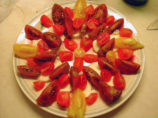 Marianna’s Peace habt ihr ja schon ausführlich beschrieben. Sie ist aromatisch und hat dazu eine besondere Konsistenz, sie schmilzt fast auf der Zunge. Die neuen Sorten, die ich ausprobiere, stehen in einem 10-Liter-Eimer und ich muss ihr Höhenwachstum begrenzen., bei Marianna’s Peace heißt dies, es gibt zwei Frurchtansätze, ca. 8 Tomaten. Gesamturteil: Sie kommt auf jeden Fall auf die Liste für 2005.