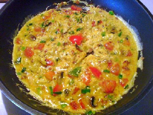 musste meinen beitrag ändern, denn in der küche ging es gerade ganz anders zu ;)es bleibt beim profanen rührei...etwas deftig angemacht:speck in olivenöl angebraten, etwas kleingeschnittener champignon, tomate und thymian dazu, zuletzt kleine geschnitener grüner porree, in der zwischenzeit eier mit sahne und thymian, salz pfeffer, einem hauch curry und koriandersamen dazu und einen klaks schwarze olivenpaste...das ganze gut verrührt und ind er pfanne gebraten: es schmeckt gerade lecker