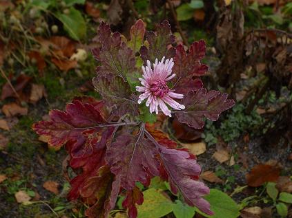 Und als letzte Staude beginnt gerade zu blühen Chrysanthemum 'Nebelrose' :