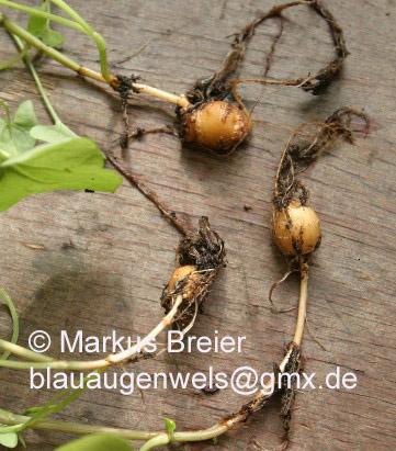 Hier zwei junge Knollen. Ältere Knollen sind außen dunkelbraun und leiht warzig.