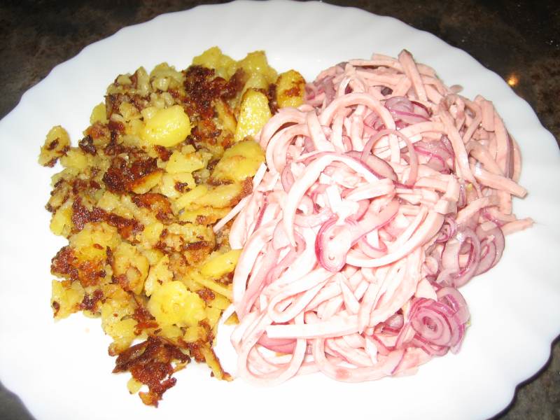 Bei uns gabs heute Hausmannskost !Bratkartoffel mit Wurstsalat