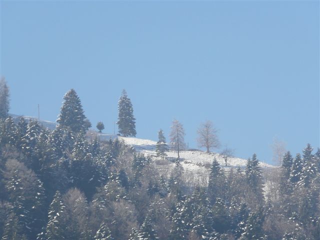 Wir hatten heute morgen -10°, jetzt sind es -4.Den ganzen Tag Nebel, die Bäume haben einen herrlichen Überzug bekommen - darf nur nicht zuviel werden!Im oberen Bergland, ca. 800m hoch, die hatten den ganzen Tag Sonne.Schnee sowieso