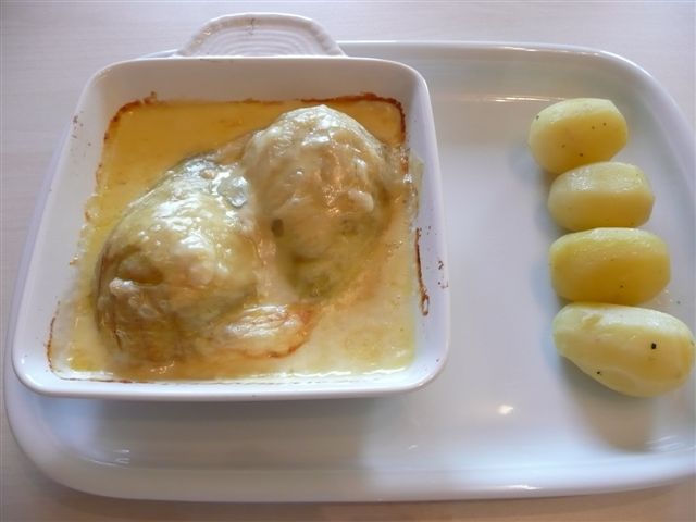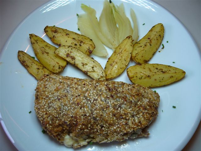 .... es gab:BlattsalatCordonbleu mit Camembert gefüllt, Ofenkartoffeln und Fenchel