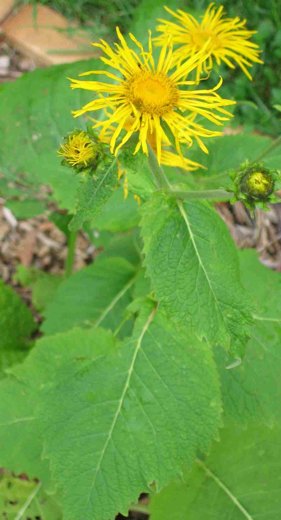 Telekia ist sehr variabel im Aussehen, bei mir werden die Blätter der im Schatten stehenden auch runder und dunkler im Grün, ich würde bei dem Bild von malus auch auf Telekia tippen. Die Röhrenblüten von Telekia werden nach dem Verblühen sehr dunkel bis fast schwarz, bei Alant bleiben sie deutlich heller- vielleicht dient das als Bestimmungshilfe.
