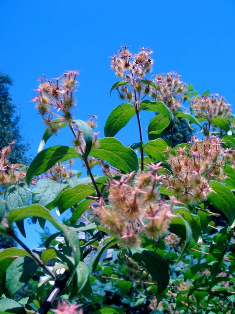 Kolkwitzie, verblüht, vor ungewöhnlich blauem Himmel. ;DIch wähle das W .