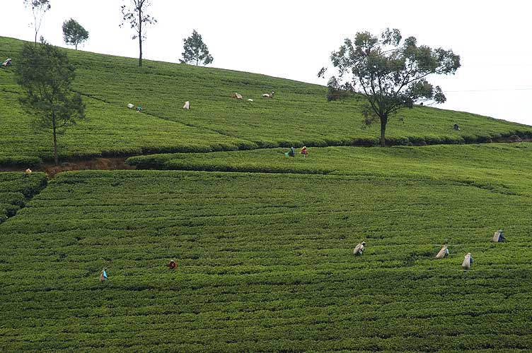 Die Engländer brachten auch den Tee nach Sri Lanka, nachdem die Kaffeepflanzen einer Krankheit zum Opfer gefallen waren.Ceylon-Tees sind recht kräftig. Das Beste geht in den Export, aber man bekommt auch ganz guten Tee in den Hotels. - Eine Kanne Tee (reicht für 4 Tassen) mit Milch und Zucker kostet ca. 1 bis 2 Euro, je nach Hotel.EineTeepflückerin soll ca. 1,25 Euro amTag verdienen, habe ich im Reiseführer gelesen.