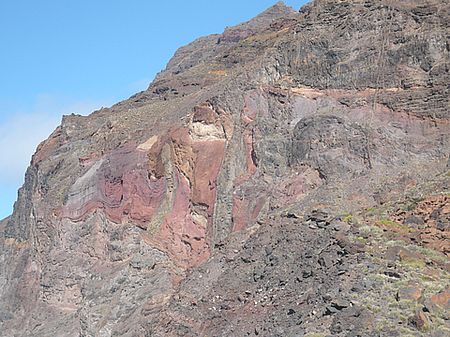 An manchen Stellen ist der mineralische, aber recht weiche Untergrund leuchtend rot.