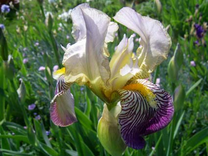soweit aus Band 9 der Farn- und Blütenpflanzen Baden-Württembergs; Sebald, Seybold...Meine kannst du hier unten betrachten.Äußere Kronblätter - Hängeblätter - hellviolett bis schmutzigviolett mit weißem, bis zum Rand dunkelgeadertem Grund oder purpurviolett mit brauner Aderung. Bart weiß oder gelb. Innere Kronblätter - Dom - aufrecht, am Grunde gelb, mit schmutziger graublauer oder bräunlicher, gelblich-violetter Farbe