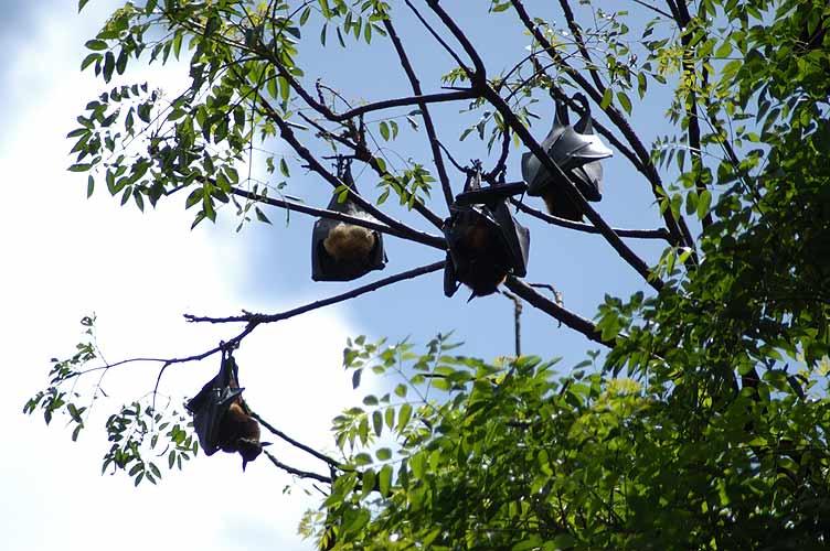 Flughunde.Irre ist es, wenn sie zum Sonnenuntergang aufbrechen. Zu Hunderten ziehen ihre Staffeln über den Himmel. Sie fliegen auf die Felder und plündern.Und morgens um Sonnenaufgang kommen sie zurück.Dracula-GrüßeThomas