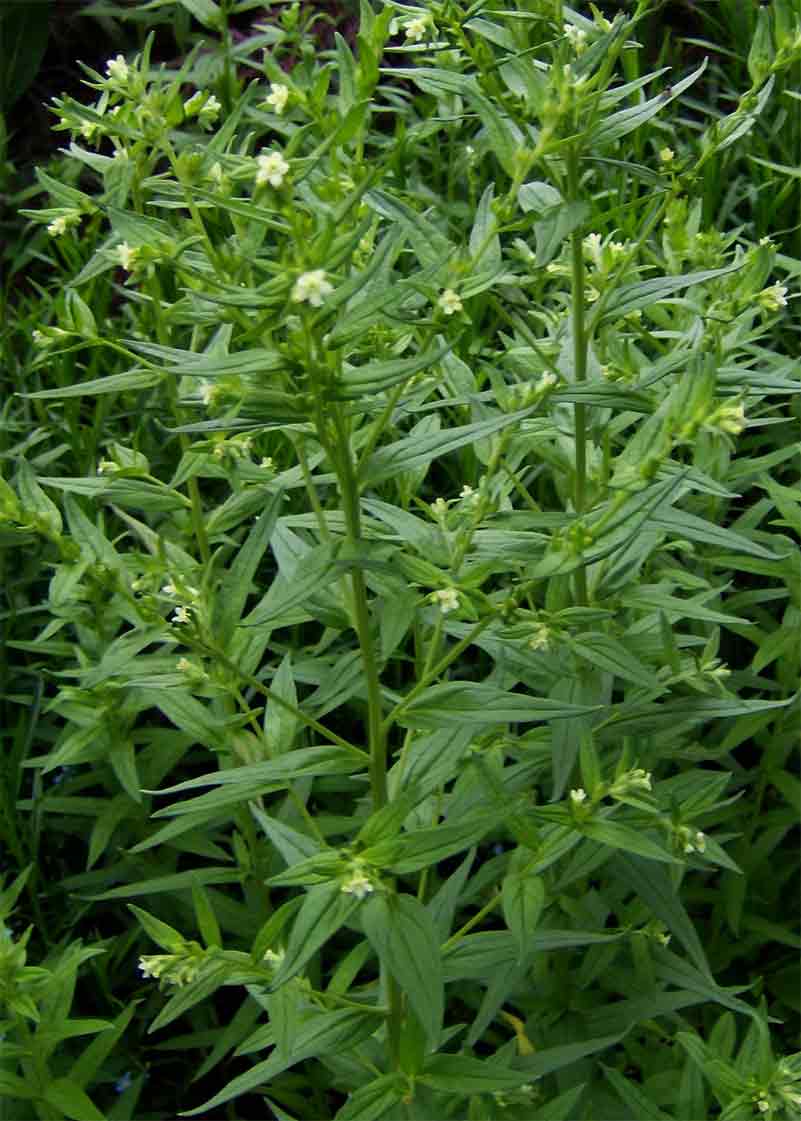 Der andere bei uns heimische Steinsame ist der Acker-Steinsame. Korrektur: Das auif dem Bild ist natürlich der echte Steinsame; der Acker-Steinsame ist viel kleiner. Sein Gartenwert (des echten Steinsame) ist begrenzt, er wächst aber schön steif aufrecht (sturmfest; bringt Struktur ins Staudenbeet) und ist im Winter mit schönen weißen Samen behangen.Alles andere (Lithodora diffusa usw.) wird zwar Steinsame genannt, ist aber strenggenommen, so glaube ich, was anderes.