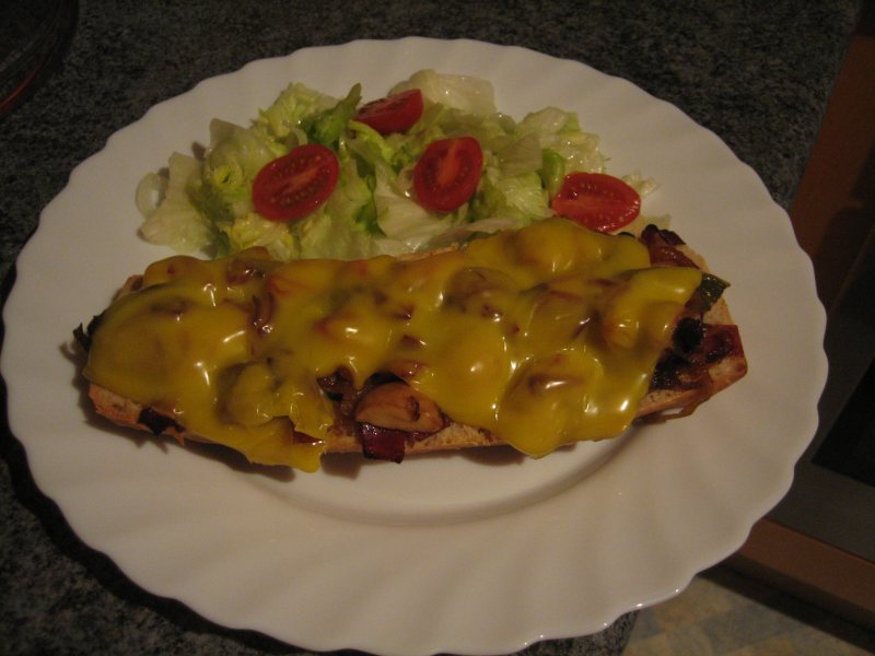 und heute gab es Paprika- Salami Baqutte mit Salat!