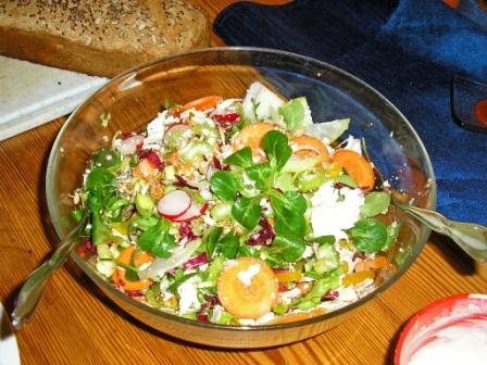 Zur Zeit esse ich hauptsächlich vegetarisch, daher gab es am Mittag einen Nuss/Getreidebraten mit Kartoffelpürree und Champignonsosse - habe leider kein Foto gemachtJetzt am Abend gabs einen Gemüsesalat mit Sauerrahmdressing mit frisch geriebenem Kren und Walnussöl angemacht. Dazu frisch gebackenes Vollkornbrot mit Avocado/Minze AufstrichVom Salat gibts ein Foto ;)LG Lamisa