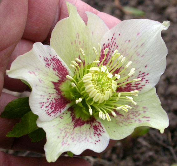Aus diesem Grund bin ich in manchen Bereichen fast helleborusfrei geworden. Aber die nächsten Sämlinge stehen schon wieder Schlange.Susanne, ich selektiere jetzt ganz scharf. Entweder, nach einer bestimmten Zeichnung in Kombination mit einer Farbe, oder eben ganz einfarbig- und das scheint erheblich schwieriger zu sein. Und sehr wichtig scheint mir die Blütenform zu sein. Sonnenschein hat z.B. eine pflaumig- schwarze Sternblüte in ihrem Garten, irre!!!!!Meine sind alle brav und sanft gerundet....Sämlinge mit nicht hängenden Blüten werden auch erst mal geschont, sofern sie nicht völlig langweilige Farben und Zeichnungen haben. Ich habe gemerkt, dass zumindest die Ashwood Mutterpflanzen an ihre Sämlinge die Blütenposition recht zuverlässig weiter vererben. Und wie oft habe ich schon sehr neugierig eine von außen interessant aussehende Blüte angehoben, und innen sah sie bla.. ausIm Vorgarten steht eine Weiße mit je einem schwarzroten Fleck auf jeder Sepale. Die Blüten sind riesig und senken ihre Köpfe verschämt nahezu bis auf den Boden. Um die Blüten zu sehen, muss ich 1 000 Kleinigkeiten niedertrampeln, so ein Quatsch. Ein , zwei schöne Sämlinge und weg ist sie, ehe sie noch mehr Schaden anrichtet (aber ich habe noch keine gefunden, muss mich also weiter ärgern)Andererseits wollte ich alle guttatus-Sämlinge aussortieren, weil die sich so penetrant durchsetzen.