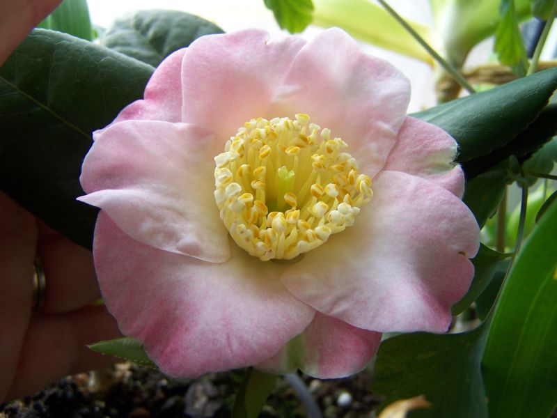 @igaZu deiner Frage nach der Identifikation deiner Kamelie (Blüte Seite 36). Wie jens erinnert auch mich die Blüte sehr an Shibori Egao. Obwohl ich meine Egao (reinrosa) gleichmässiger im Wuchs in Erinnerung habe, die Blüte ist sehr ähnlich. Die Ginryu (hat Andrea, glaube ich, vermutet, aber Ginryu ist ganz weiss) wächst bei mir ähnlich, ein wenig wild. Und beides sind ja C. x vernalis. Also, ich tippe jedenfalls auf eine Vernalis.Auf den Fotos kannst du am besten slbst mit deiner Pflanze vergleiche, ob Blüte, Blatt und Wuchs hinkommen. Leider habe ich kein Bild der ganzen Egao und sie ist zu tief eingewintert., um sie heraus zu holen.@violatricolorWunderschön deine Goshozakura, meine Lieblings-Higo neben Fuji. Ich mag die Farbschattierungen von dunklem Rosa bis hellrosé.@klunkerfroschBis jetzt habe ich Janet Waterhouse noch nicht ausgepflanzt, habe es aber dieses Jahr vor, obwohl ich nicht weiss, wie lange ich in diesem gemieteten Garten noch bleiben werde. Wenn ich dann mal ein eigenes Grundstück habe (im Tessin...) träum... und meinen eigenen Kameliengarten anlegen kann, träum... bruche ich viel hilfreiche Arme zum ausgraben der Ausgepflanzten (und einen eigenen "Möbel"wagen zum zügeln). Aber die Schweizer Grundstückpreise, speziell die Tessiner