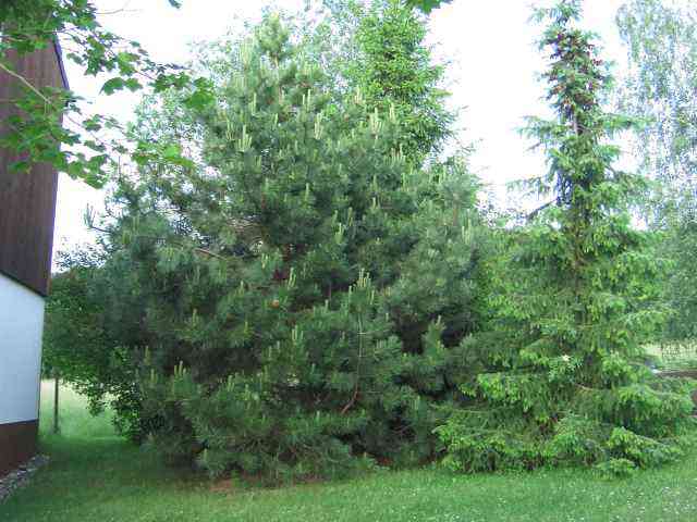Die Kiefer wird eines Tages riesengroß sein und dann auch einem Rambler Platz bieten, Du könntest allerdings jetzt noch darüber nachdenken, sie als Riesenbonsai zu ziehen. Ich würde eher in die daneben stehende Fichte einen Rambler wachsen lassen. Bei mir wächst z.B. ´Glenn Dale´ ca 8m hoch in eine alte hässliche Fichte hinein, sie hat aber ungefähr 10 Jahre gebraucht um diese Höhe zu erreichen.