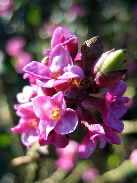 Der erste Seidelbast draußen, Daphne odorata, da im Gewächshaus, nicht mitgerechnet.