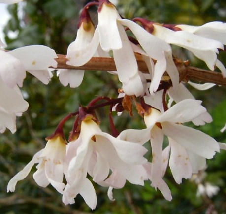 Hallo Verby!Abeliophyllum distichum haben wir seit Mai 2000 im Garten. Umland von Berlin, Klimazone 7a. Überhaupt keine Probleme! Es ist natürlich eine sehr zarte Blüte. Sie macht nicht viel her, aber wenn in dieser Jahreszeit noch nicht viel los ist bei den Gehölzen, macht sie doch viel Freude. Ich habe sie noch etwas abgestützt, da sie etwas sehr zierlich ist.Liebe GrüßeGartenhexe