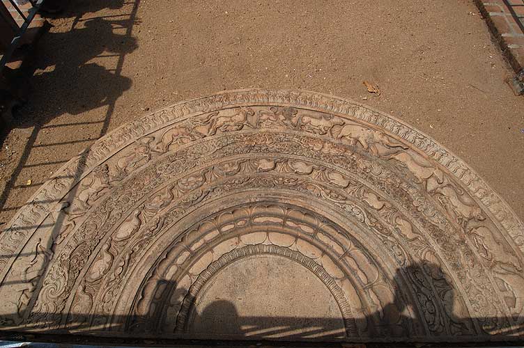 Mondstein in Mahasens Palast, Anuradhapura -wahrscheinlich der schönste auf Sri Lanka.Man beachte den völlig anderen Aufbau verglichen mit dem Mondstein in Post #94.