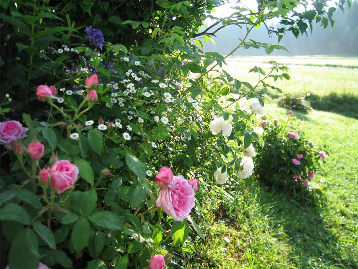 Liebe Rosisten, liebe garten-purler,vor ungefähr einem Jahr haben wir einen großen und sehr verwahrlosten Garten übernommen. Nach langen Monaten der Schutt- und Müllberäumung, Brombeerbekämpfung etc. waren wir im Herbst soweit, die ersten Gehölze und Rosen zu setzen. Und wie das so ist, wenn man mit Rosen einmal angefangen hat: es artet ganz schnell aus. Dunkle Januarwochen verbringt man über Rosenkatalogen und kommt zu dem Schluß, daß man die eine und die andere ganz unbedingt noch haben muß. So habe ich für die Märzlieferung noch mal sieben Röslein bestellt: Boule de Neige, Comte de Chambord (Mme Boll), Cardinal Richelieu, Blanchefleur, Felicité Parmentier, Blush Damask und Blush Hip. Im Katalog von Schultheis (und auch auf den Seiten von Christine Meile) sahen sie so aus, als ob sie farblich gut zusammenpassen würden. Doch dann begegneten mir in der Könemannschen Enzyklopädie Fotos von Blanchefleur und Felicité Parmentier, auf denen sie kein bißchen zart rosa und weiß verblassend aussehen, sondern eher fleischfarben, fast apricot. Mir ist klar, daß das mit Farbwiedergabe auf Fotos und im Netz so eine Sache ist. Und daß der Farbton je nach Boden, Mikroklima etc. variieren kann. Nur apricot fände ich einfach unpassend … Seit einigen Wochen lese ich mit Begeisterung auf den wunderbaren Seiten des Forums von Garten-pur. Grandios gegliedert, lehrreich, amüsant – großes Kompliment ! Vielleicht wisst Ihr Rat ? In welchen Farben zeigen sich Blanchefleur und Felicité Parmentier in Euren Gärten ? Würden sie zu den anderen genannten passen ? Tausend Dank und liebe Grüße, Conni