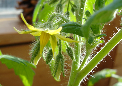 des WahnsinnsfettebeuteAls Gegengewicht hier ein Bild von meiner 42Day Tomate, heute ist sie aufgeblüht.