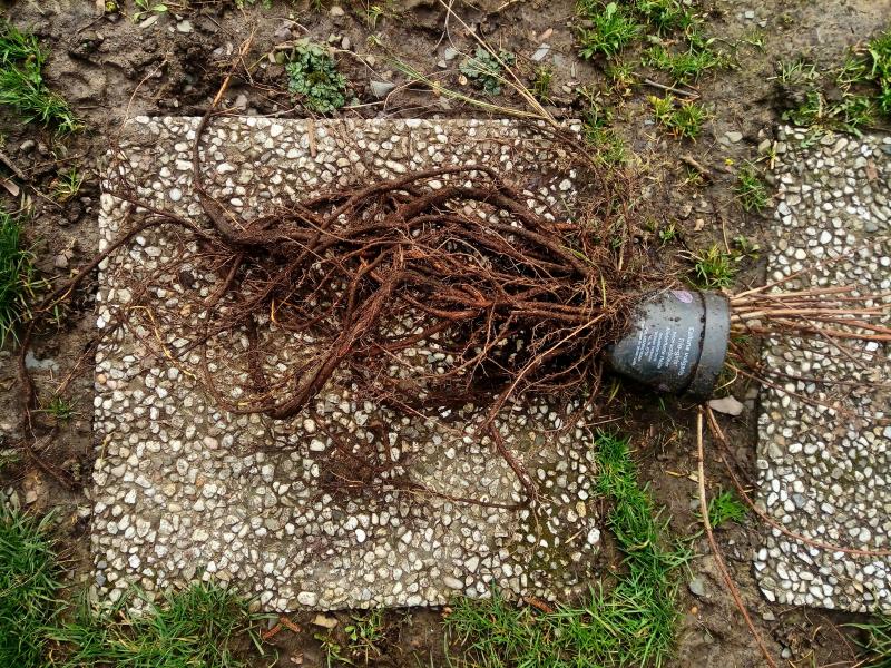 upsi, habe das wurzelwachstum unterschätzt. habe diesen kleinen Topf mit einem Hopfenableger mit 10 cm Durchmesser in einen 40 Liter Topf gestellt (auf einer 50 cm Waschbetonplatte) . Das war vor zwei Vegetationsperioden. Ich dachte, das würde die frisch veredelte Kirsche nicht stören. Als ich nun den Topf verrückte, um die Kirsche zur Auspflanzung vorzubereiten, habe ich schon sehr erstaunt geguckt, als ich sah, das Wurzeln schon in der Erde unter dem 40 Liter Topf sich recht stark ausbreiteten. Ich dachte es wäre die Kirsche, die so wurzelte, mir kam es aber spanisch vor, dass die Wurzeln recht flexibel und hell waren.