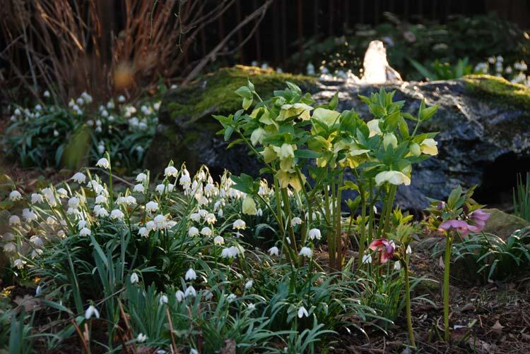Ich hab Eure Garteneinblicke schon vermißt...Wie gewohnt wunderschöne Fotos...Gartenlady, das Bild mit den Märzenbechern ist besonders zauberhaft!Wie machst Du das eigentlich mit der Pumpe des Sprudelsteins im Winter? Nimmst Du sie nie rein? Denn der Stein muß ja kaum zu bewegen sein