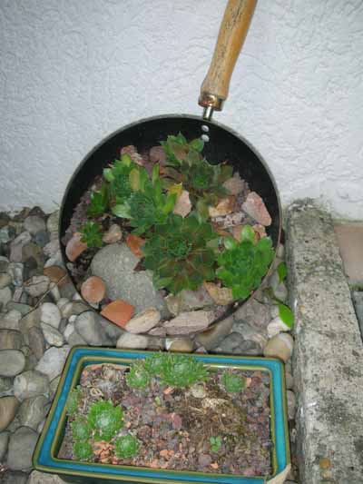 Sieht doch sehr schick aus, fars! Die Formen hätten mir auch gefallen.In die zweite könntest du Dachwurze pflanzen. Küchengeräte eignen sich hierfür hervorragend