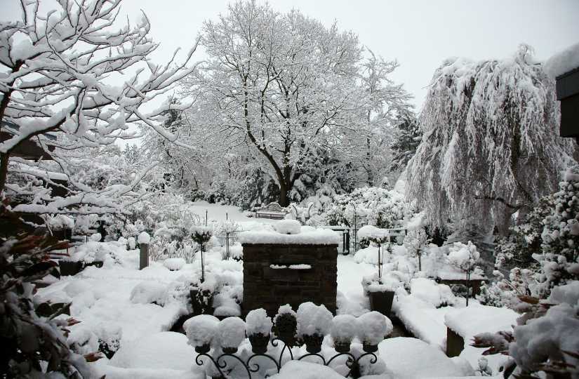 Auch bei uns hier in der nördlichen Eifel so viel schwerer Schnee wie seit Jahren nicht (10-25 cm; je nach Bodenisolation). Die Wacholder sind auseinandergedrückt, und die 3m hohe Garrya (ursprünglich an der Hauswand) hängt bis zum Boden, wie auch alle fast aufgeblühten Narzissen.Wie sagt der Rheinländer hier: das wäre nicht nötig gewesen! (sorry, ohne Dialekt; bin kein Rheinländer).