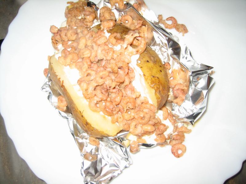 Heute gabs Folienkartoffeln mit Sour Creme und Schrimps