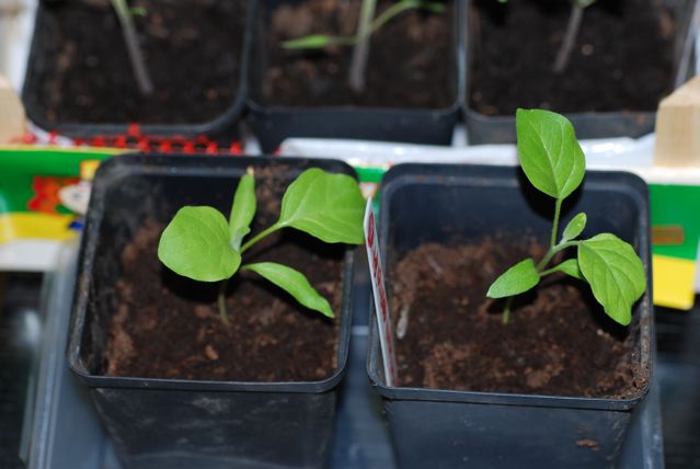Hier 2 Auberginen, 03.02.Entwicklung erscheint mir gut. Später nochmal nachgesät, ohne auf den Mond zu achten. Auch gut gekeimt.