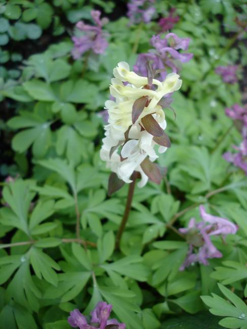 Der größte Teil meiner mittlerweile Unmengen von Corydaliden ist noch knospig, aber, sowie sie sich nun nach vielen, vielen Jahren des Genaustauschs in der Farbe unterscheiden, so differieren sie auch hinsichtlich der Blütezeit, der Kompaktheit bzw. Lockerheit des Blütenstandes, der Höe etc. Hiermal ein leicht bläulich angehauchtes frühes Exemplar: