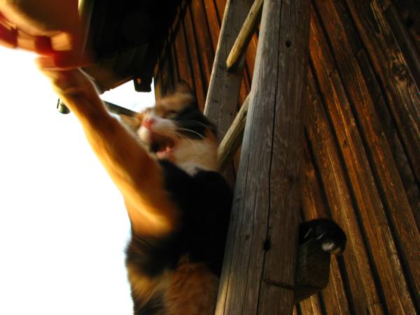 :)Wenn ich versucht habe, unseren alten Kater mit der linken Hand zu 'bespielen', um mit der Kamera in der rechten zu fotografieren ... hat er mir nicht selten einen präzisen Schlag auf die Kamera gegeben.