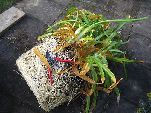 Das ganze dann auf 2 neue große Töpfe verteilt und geputzt. Sieht noch etwas blaß aus, aber ich bin ganz optimistisch, daß er wieder schön blühen wird.