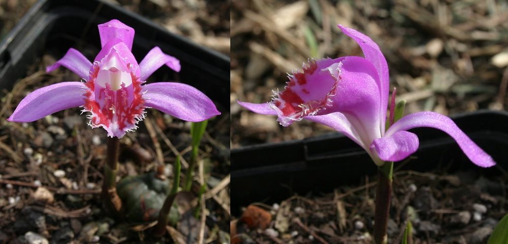 ...und der genauso schöne eine Elternteil dieser Hybride: Pleione praecox,